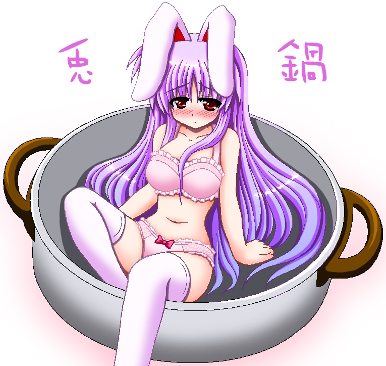1girlanimal earsblushbowbow pantiesbrafemale focuslingeriepantiespink brapink pantiespurple hairrabbit earsred eyessolothighhighsunderwearunderwear only