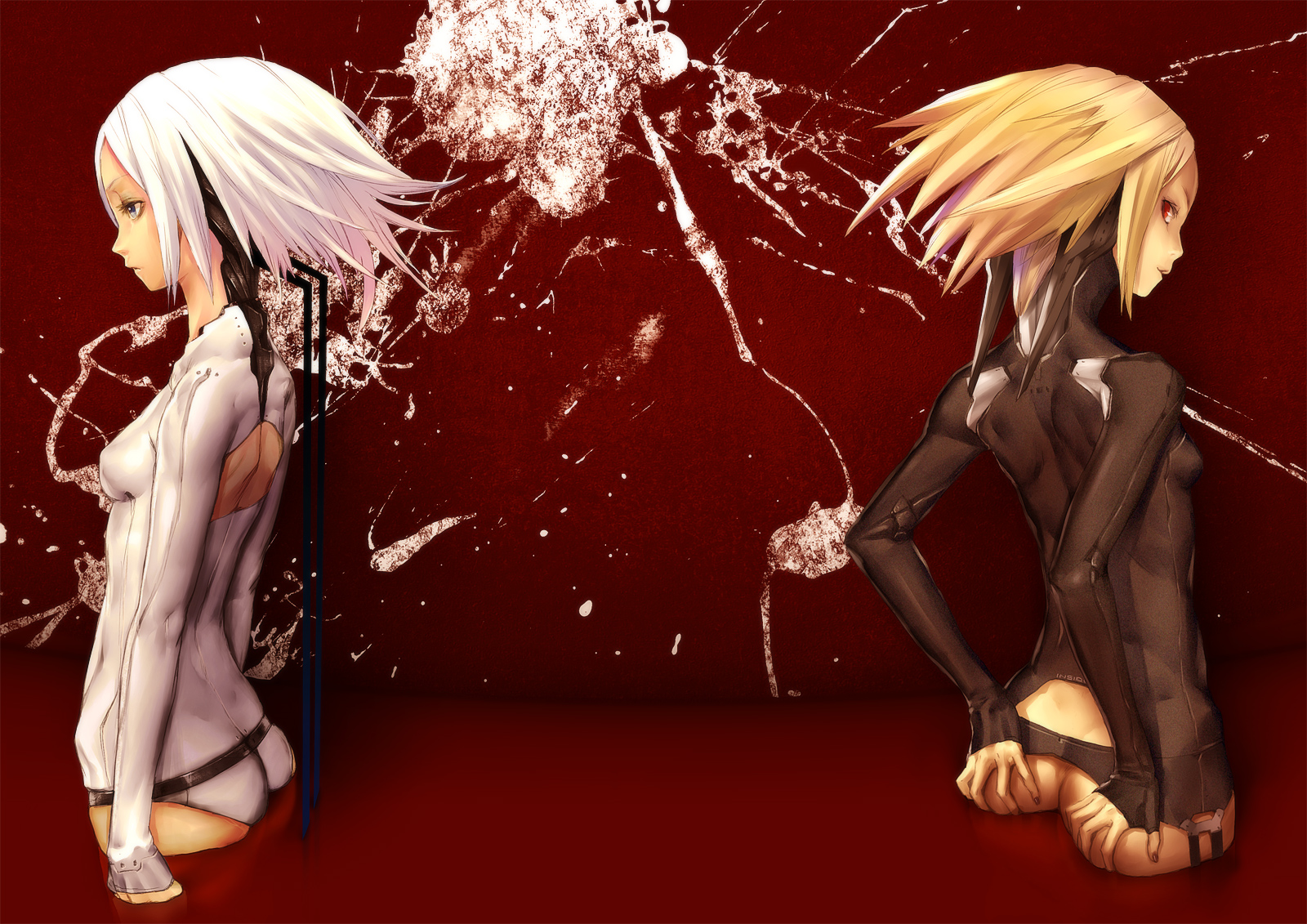 2girlsassblonde hairblue eyesfemale focusgrabbing own asslooking backmultiple girlsred eyesshort hairstandingwadingwhite hair
