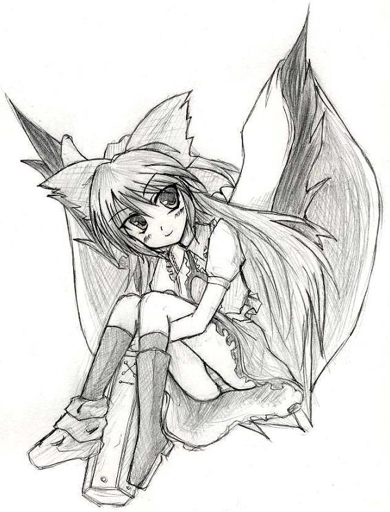1girlassfemale focusfull bodygreyscalemonochromepantiesribbonsketchskirtsolounderwearwhite backgroundwings