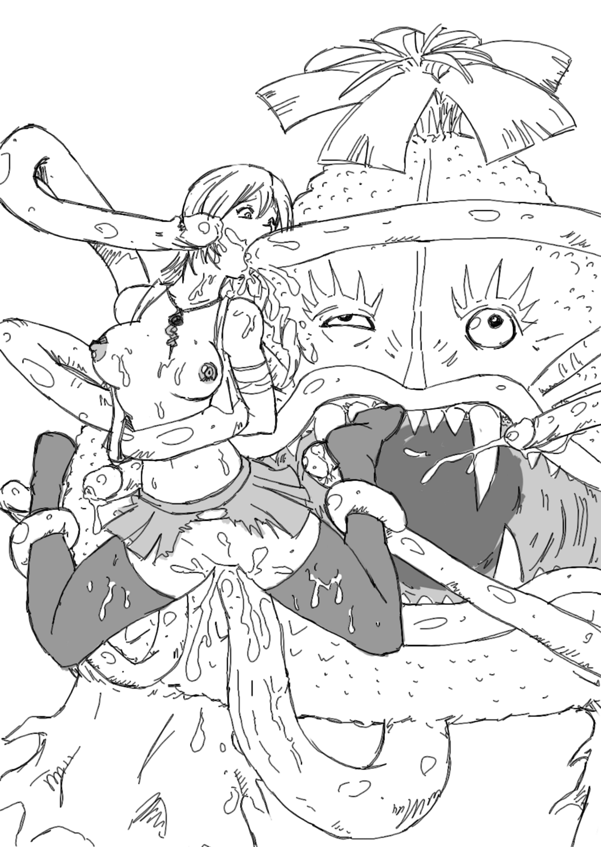 tarao, doraemon (character), doraemon, braid, forest, greyscale, monochrome, nature, solo, stuffed animal, stuffed toy, twin braids