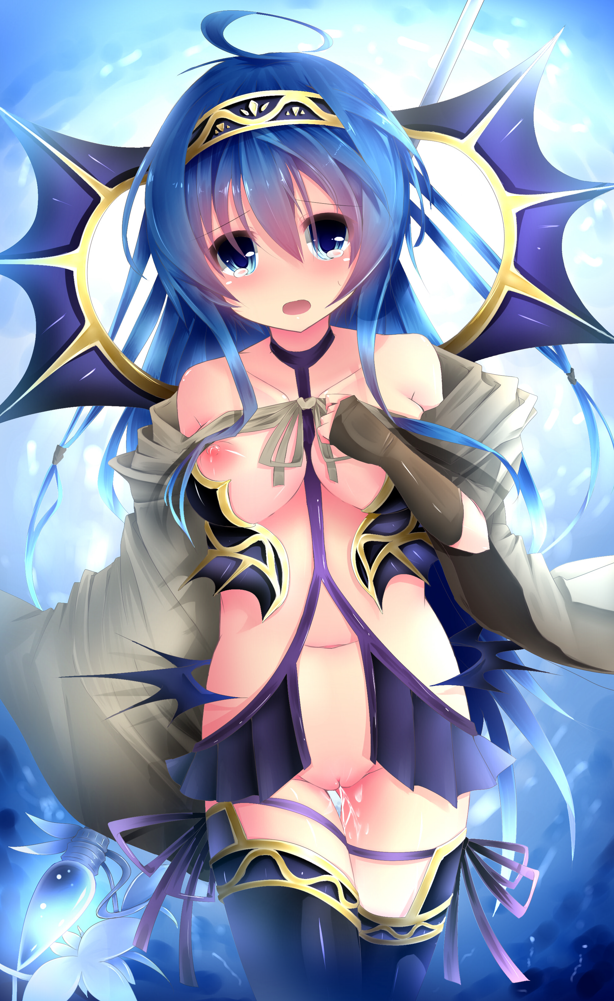 :oahogeareolaearm behind backbare shouldersblue eyesblue hairblue legwearbreastscollarbonecowboy shotduel monsterfemaleFlag for Deletionlong hairlooking at viewermedium breastsnavelnipplesopen mouthpussypussy juicesilyouta1120solotearsthighhighs