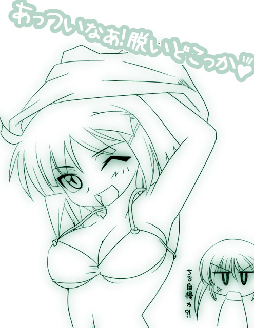:d00s2girlsanger veinblushbrabreastsgreen themehair ornamenthaircliplingeriemonochromemultiple girlsone eye closedopen mouthsmileunderwearundressingwink