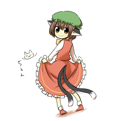1girlanimal earsbowbowtiebrown eyesbrown haircatcat earscat tailclothes liftdressdress liftfemale focusfull bodyhatlooking backmultiple tailssolotailwhite background