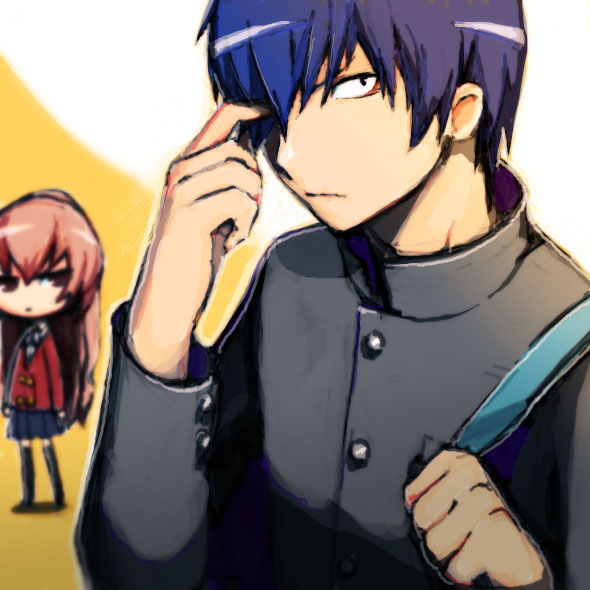 george, sawa jaaji, kuhouin murasaki, kurenai shinkurou, kure-nai, kurenai, 00s, 1boy, 1girl, aged up, blunt bangs, cellphone, couple, greyscale, hetero, long hair, monochrome, necktie, phone, school uniform, serafuku, sketch, skirt, thighhighs, zettai ryouiki
