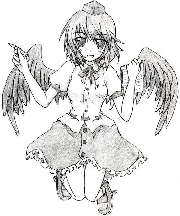 1girlfemale focusgetagreyscalehatlooking at viewermonochromeopen mouthsketchsmilesolotengu-geta