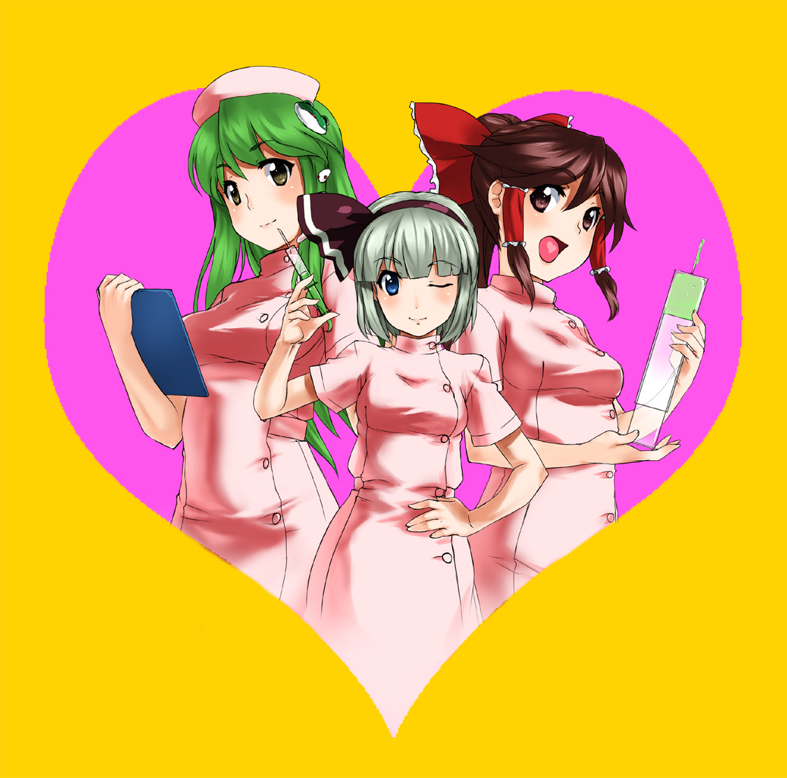 agent orange, aor saiun, translated, 2girls, :d, black hair, brown eyes, conjoined, extra arms, multi limb, multiple girls, multiple heads, open mouth, short hair, simple background, skirt, smile, speech bubble, thighhighs, what, white background, zettai ryouiki