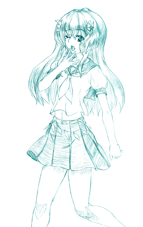 yuuichi (tareme paradise), okonogi yuuko, oyaji (dennou coil), dennou coil, 00s, blush, clothes lift, glasses, long legs, panties, pantyshot, skirt, skirt lift, solo, underwear