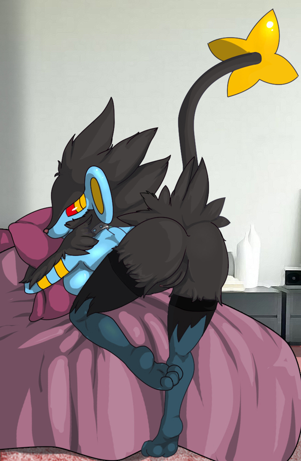 boppin, original, absurdres, commentary, commission, english commentary, highres, pixiv commission, variant set, 1girl, animal ears, barefoot, blue eyes, fang, feet, fox tail, heterochromia, japanese clothes, maid, maid headdress, panties, soles, solo, tail, toes, underwear, wa maid, white panties
