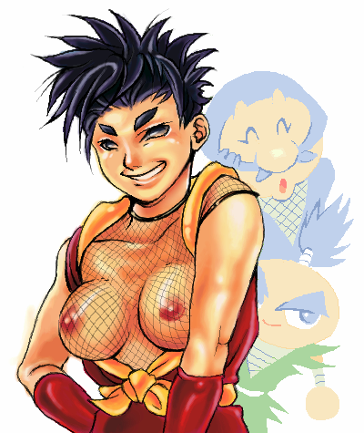 shiranui mai, fatal fury, snk, the king of fighters, 1futa, breasts, censored, futanari, green eyes, nipples, penis, solo