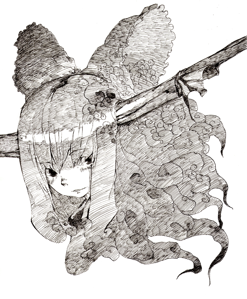 yurikuta tsukumi, toudou shimako, maria-sama ga miteru, 00s, clothes lift, greyscale, lifting own clothes, monochrome, skirt, skirt lift, solo, thighhighs