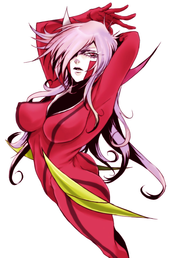 00s1girlassbodysuitbreastscovered erect nipplesfemale focuslarge breastslong hairmulticolored hairpink eyesskin tightsolo