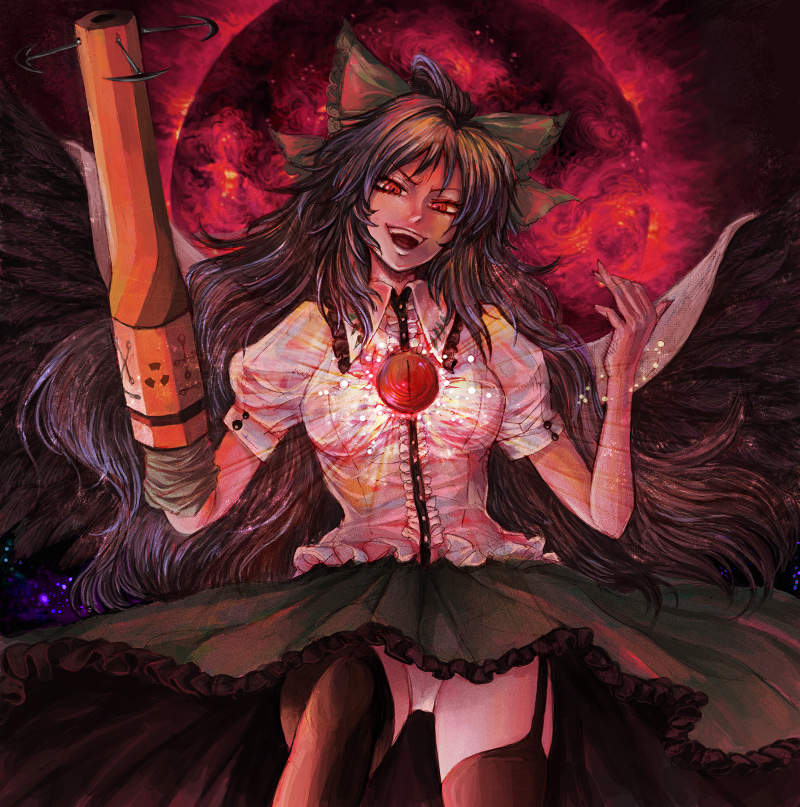 myb e2, hatsune miku, magical mirai miku, magical mirai miku (2016), 39 music (vocaloid), magical mirai (vocaloid), vocaloid, highres, 1girl, aqua eyes, aqua hair, aqua necktie, arm up, armpits, black bow, blush, bow, breasts, cable, collared shirt, dress, framed breasts, gloves, hair bow, headphones, long hair, looking at viewer, medium breasts, necktie, official alternate costume, official alternate hairstyle, open mouth, shirt, sleeveless, sleeveless dress, solo, twintails, very long hair, white background, white gloves, white shirt