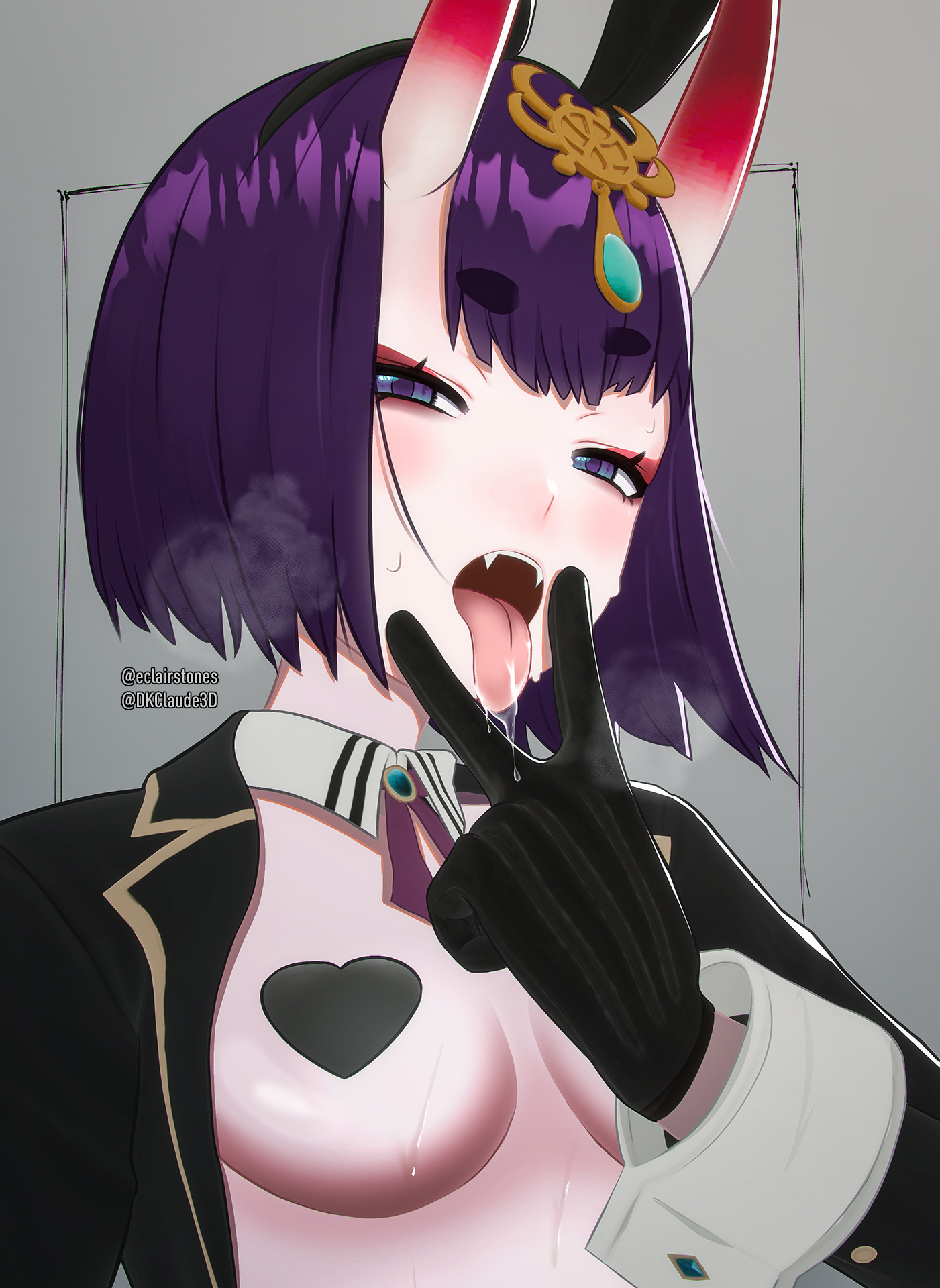 1girlalternate costumeartist nameblack glovesblack jacketblue eyesblushcunnilingus gesturedetached collareyeshadowfangsgloveshalf-closed eyeshand upheart pastiesjacketlapelslooking at viewermakeupneck ribbonnotched lapelspale skinpastiespurple hairpurple ribbonred eyeshadowribbonsolosweattonguetongue outtwitter usernamewhite wrist cuffswing collarwrist cuffs