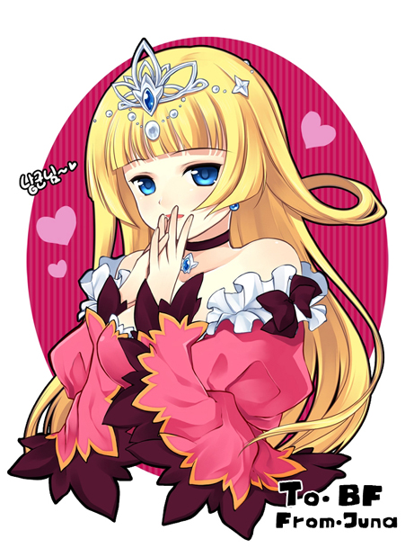 sakura nitouhei, aruma (shinrabanshou), shinrabanshou, black legwear, 1girl, blonde hair, blush, bow, bowtie, crying, crying with eyes open, dress, female focus, green eyes, long hair, long sleeves, own hands together, red dress, shoes, solo, standing, tears, v arms, very long hair, wings