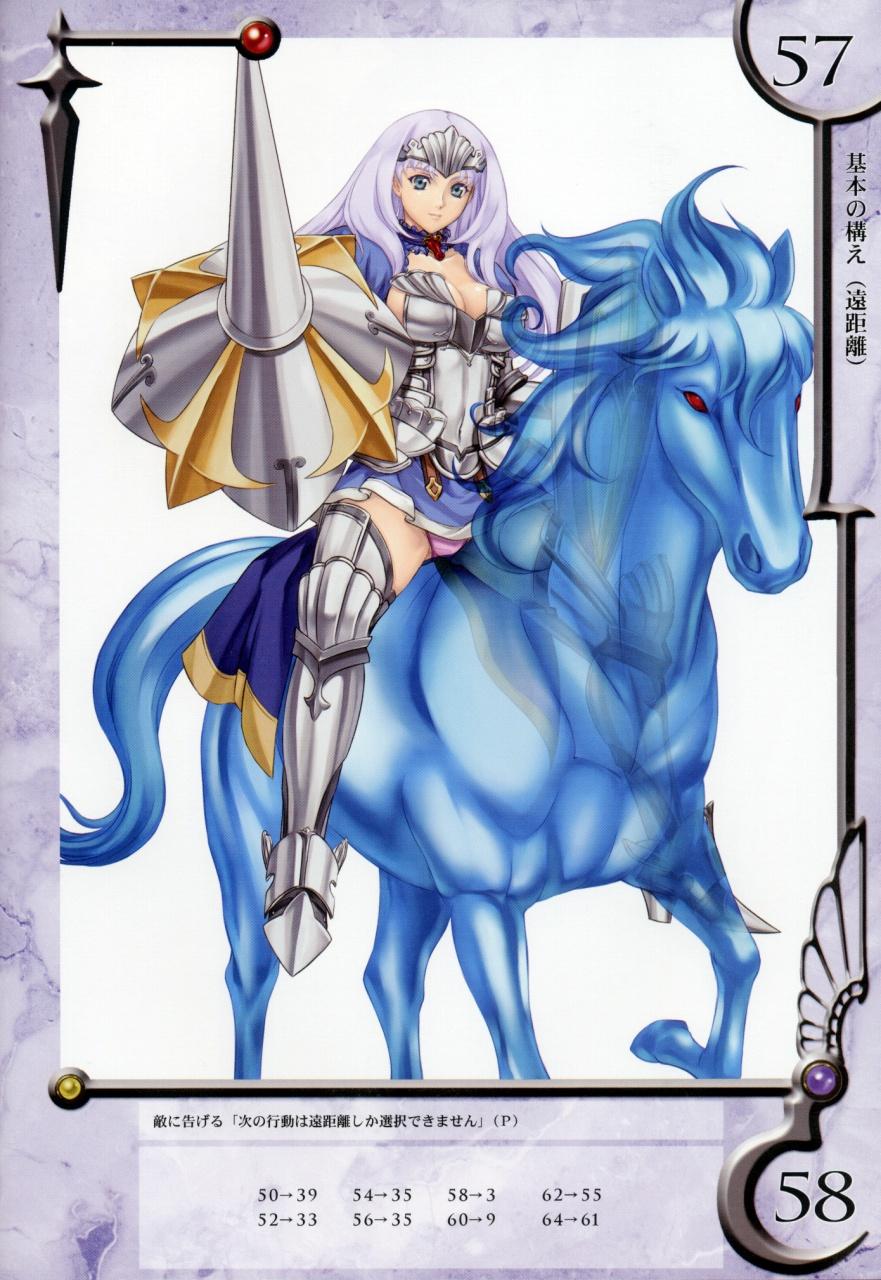 00s10s1girlannelotte (queen's blade)armorarmored dressblue eyesbreastscleavagedressfemale focushorselarge breastslong hairopen mouthpantiespurple hairpurple pantiessee-through clothesshieldsolothighhighstiaraunderwear