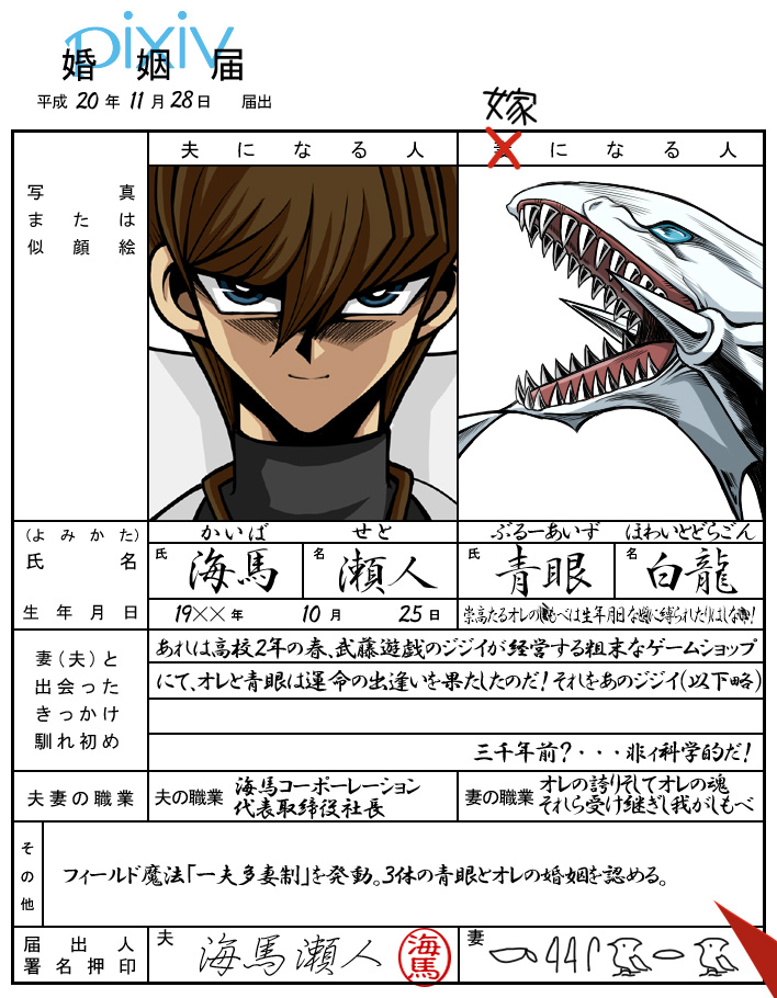 1boyblue eyesbrown haircharacter namedragonduel monsterhieroglyphicshieroglyphsmarriage certificate