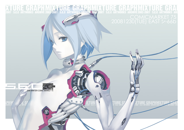 1girlandroidblue eyesblue haircablefemale focusflat chestmatching hair/eyespale skinrobotshort hairsolo