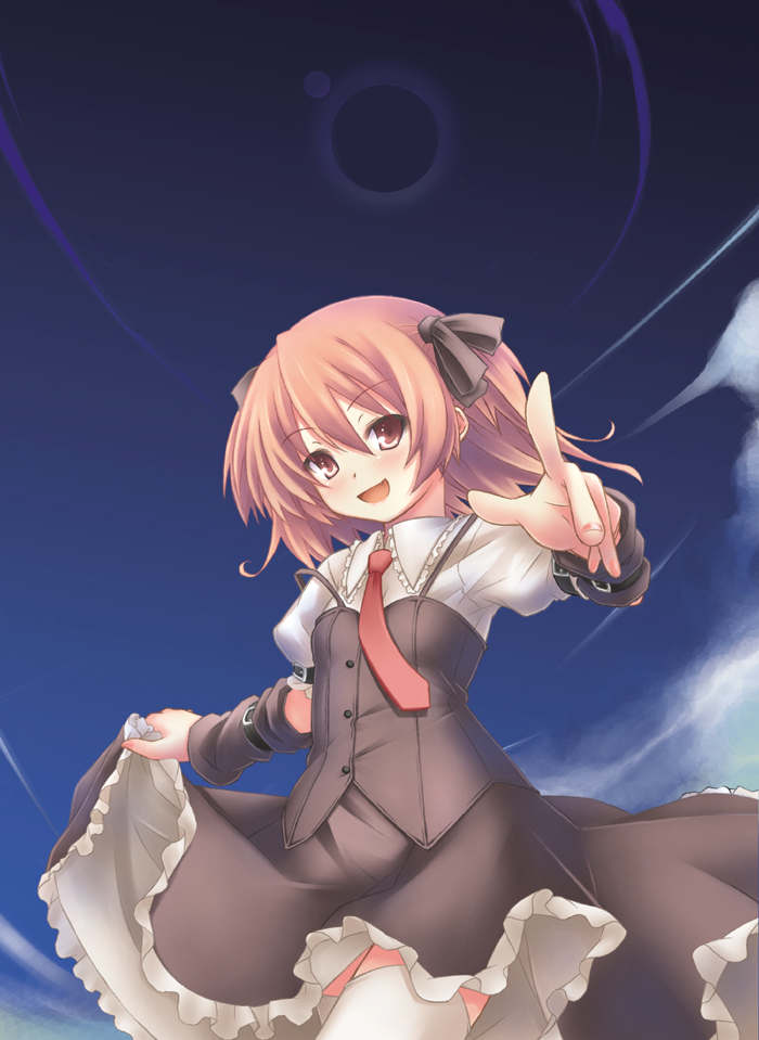 kagemichi, aoi kyouka, meshimase idol, game cg, 1girl, couple, day, dutch angle, grass, happy, hetero, locked arms, long hair, looking back, outdoors, park, pov, purple eyes, red hair, sleeveless, solo focus, tree