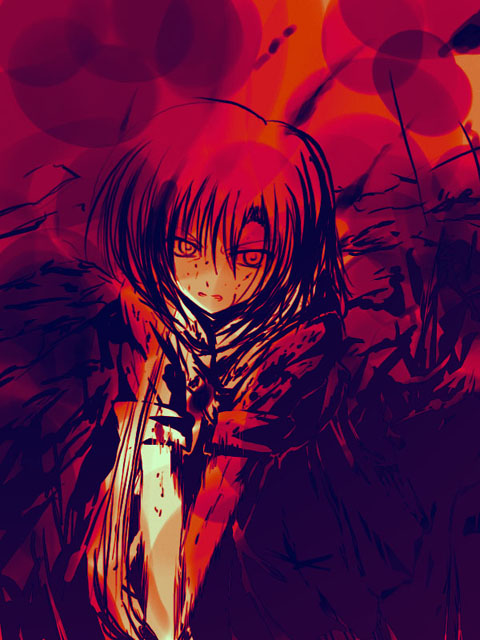 00s1girlclenched teethfemale focuslong sleeveslooking at viewermonochromeparted lipsred themesoloteethupper body