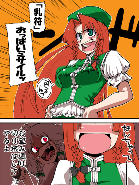 2girlsblushbraidbreast envycrazyfemale focusgreen eyeslong hairmotion blurmultiple girlsred hairtwin braidsyou gonna get raped