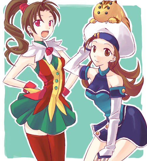 kimizuka aoi, usa mizuki, yamabuki sayuki, lost passage, black legwear, striped neckwear, highres, 2girls, bow, bow legwear, bowtie, brown eyes, brown hair, hair bow, hair intakes, long hair, moon, multiple girls, pleated skirt, ribbon, school uniform, serafuku, skirt, striped bow, striped bowtie, striped clothes, thighhighs, very long hair, zettai ryouiki
