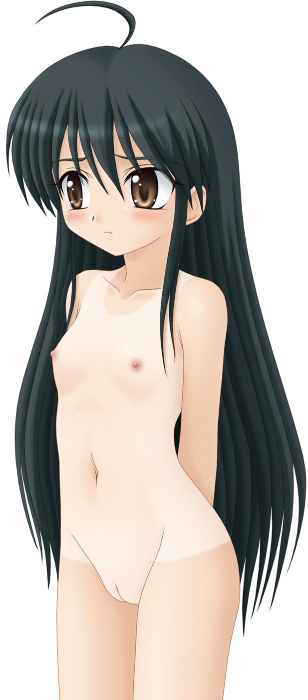 takatan, sharon (words worth), words worth, 1girl, blonde hair, blue eyes, blush, breasts, crescent, crescent hair ornament, crop top, female focus, grabbing another's breast, groping, hair ornament, holding, long hair, looking at viewer, midriff, navel, school uniform, serafuku, simple background, skirt, solo, standing, thighhighs, very long hair, white background, white thighhighs, zettai ryouiki
