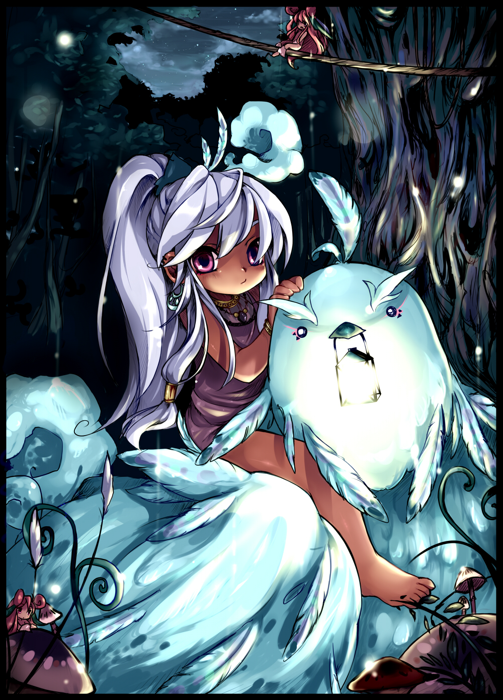 azuma mayumi, ashton anchors, chisato madison, noel chandler, precis neumann, star ocean, star ocean: the second story, brown hair, chibi, closed eyes, dragon, goggles, green eyes, open mouth, pointy ears, ponytail, short hair, writing