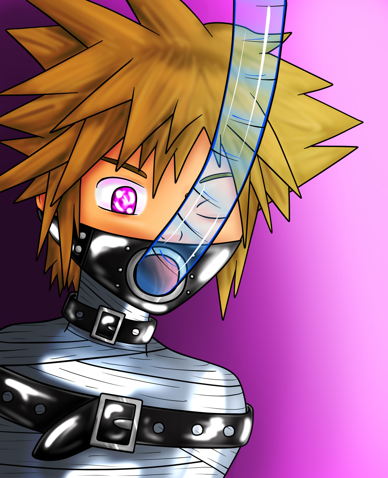 chan co, kisaragi chihaya, mecha chihaya, idolmaster, idolmaster (classic), katamari damacy, namco, 1girl, blue hair, blush stickers, closed eyes, copyright name, energy beam, full body, head-mounted display, long hair, parody, simple background, solo, standing, star (symbol), white background
