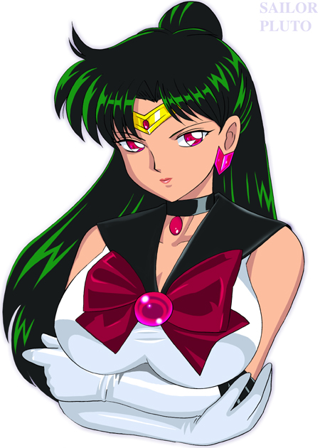 1990s (style)1girlbowbreastscharacter namechokercrossed armsdark skindark-skinned femaleearringselbow glovesfemale focusglovesgreen hairhair bunhalf updojewelrylarge breastslipsticklong hairmagical girlmakeupred bowred eyesretro artstylesingle hair bunsolotiarawhite backgroundwhite gloves
