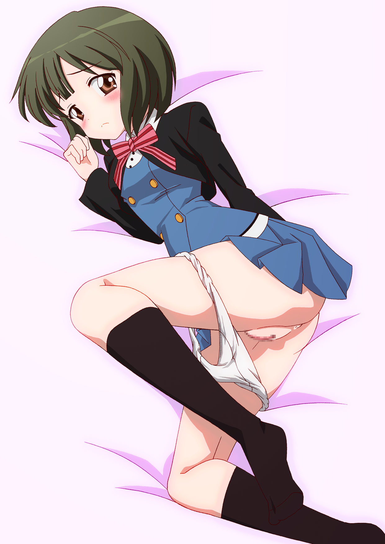 anusbedblack hairblushbrown eyesfeetfemaleFlag for Deletionkneesockspantiespanty pullpussyribbonshort hair