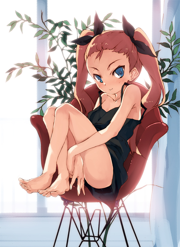 00s1girlbarefootblue eyesblushbrown haircamisolechemisefeetfemale focushugging own legssittingsmilesolostrap sliptwintails
