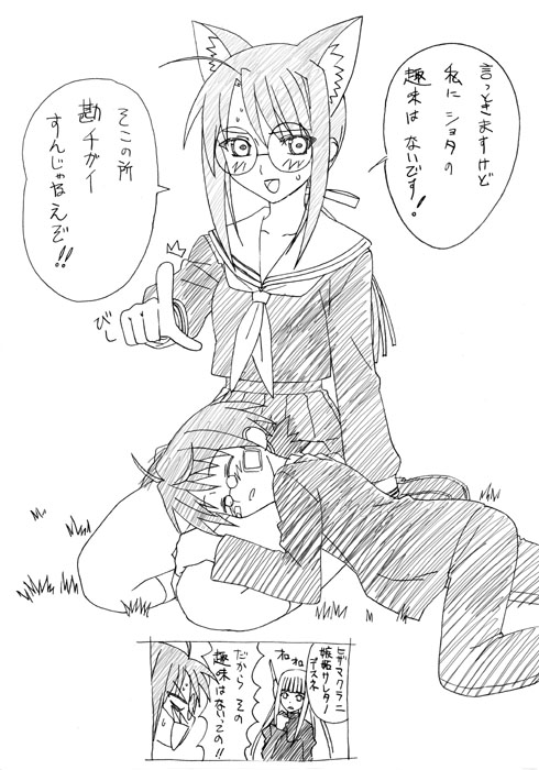00s1boy2girlsanimal earsblushgreyscalemonochromemultiple girlsrobot earsteenage girl and younger boy