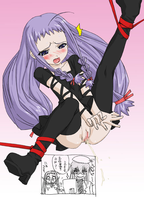 fate testarossa, ganba, noroi, takamachi nanoha, yagami hayate, yuuno scrya, ganba no bouken, lyrical nanoha, mahou shoujo lyrical nanoha, mahou shoujo lyrical nanoha a's, 00s, 2008, animal, ferret, hair ornament, monster, new year, no humans, oekaki, parody, scared, school uniform, sharp teeth, size difference, surprised, teeth, twintails, upper body, vest, wide sleeves, x hair ornament