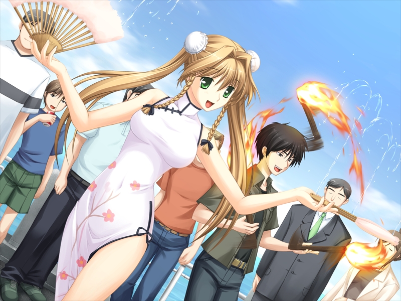 nadeara bukichi, hasebe ai, kaminogi haruka, mukai miho, noein, highres, scan, scan artifacts, > <, 00s, 3girls, ass, back, barefoot, bikini, bikini top only, blue eyes, blue hair, brown hair, c-string, closed eyes, crease, falling, feet, german suplex, glasses, hip bones, long legs, maebari, multiple girls, navel, ocean, one-piece swimsuit, pink hair, ponytail, school swimsuit, side ponytail, sidelocks, strapless bottom, suplex, swimsuit, upside-down, water