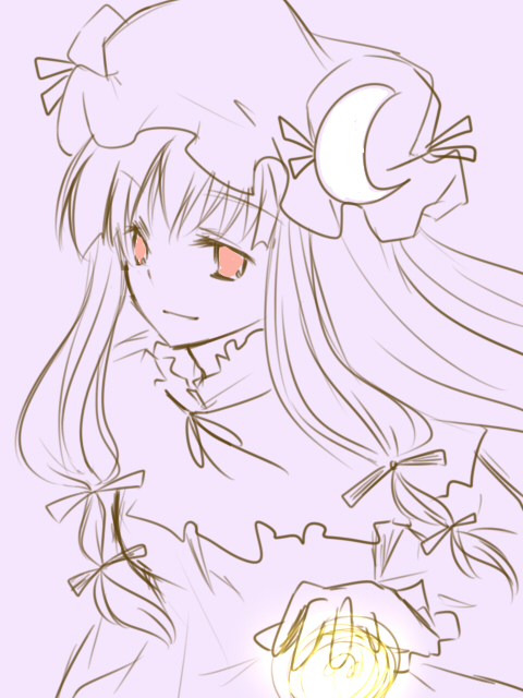 1girlcapeletcrescentcrescent hair ornamentcrescent moonfemale focushair ornamenthair ribbonhatlong hairmob capmoonpurple themered eyesribbonsimple backgroundsolo