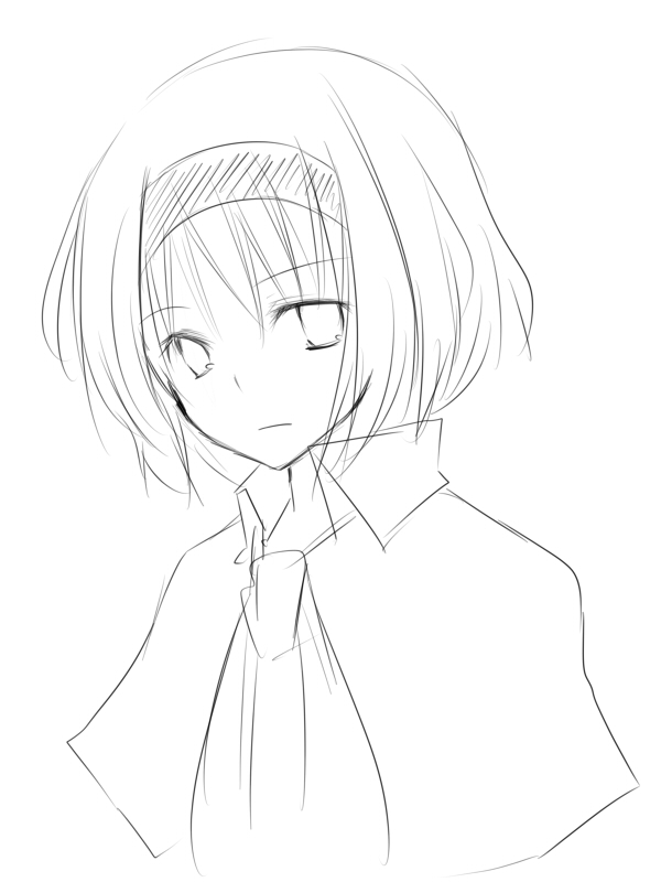 1girlcollarfemale focusgreyscalehairbandmonochromeshort hairsketchsoloupper bodywhite background