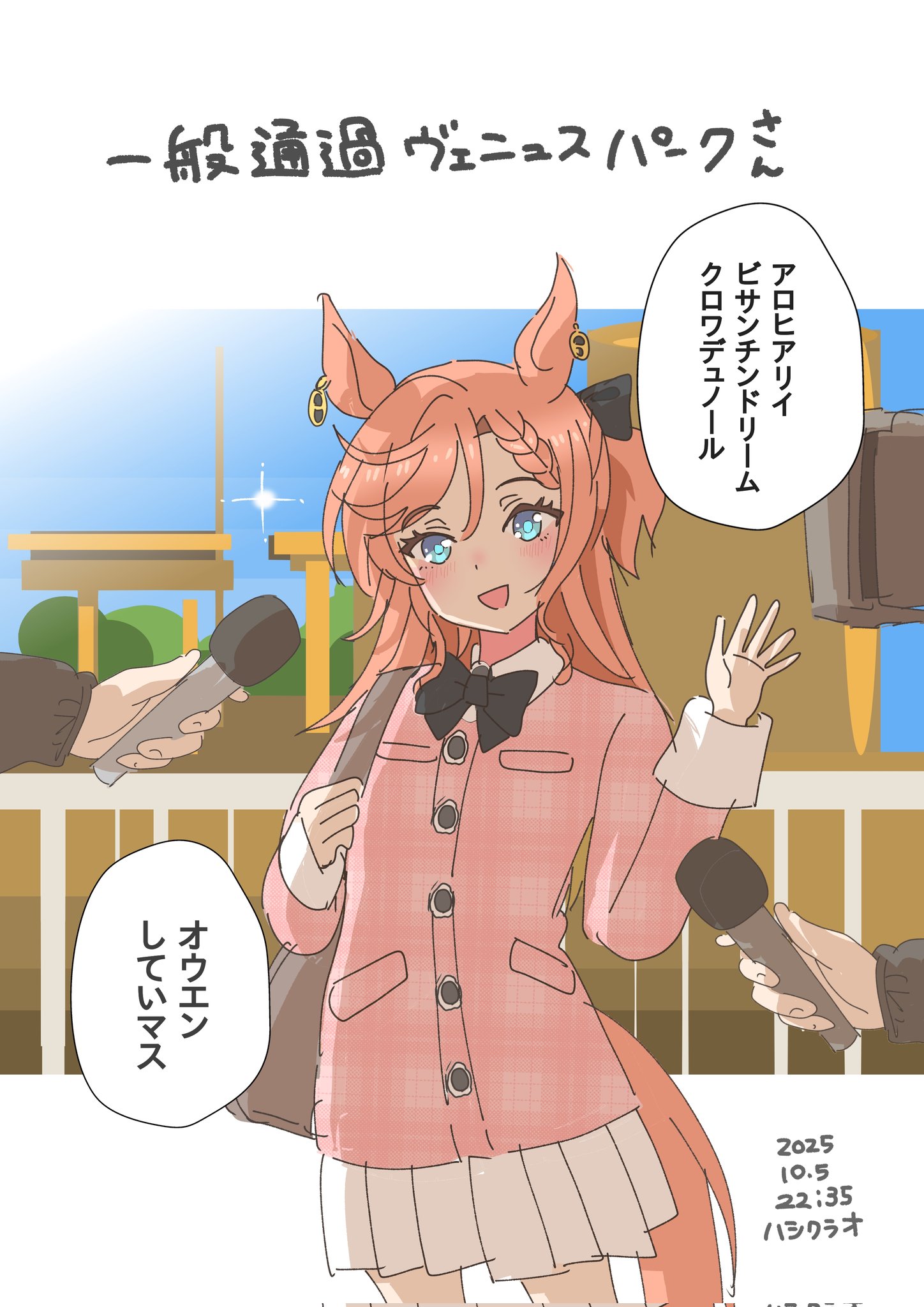 hirune (konekonelkk), akizuki (kancolle), chou-10cm-hou-chan, yukikaze (kancolle), yukikaze kai ni (kancolle), kantai collection, commentary request, translation request, 2girls, black hair, black sailor collar, blush, brown eyes, brown hair, cowboy shot, dress, grey eyes, grey neckerchief, headgear, multiple girls, neckerchief, open mouth, pink background, ponytail, sailor collar, short hair, simple background, white dress