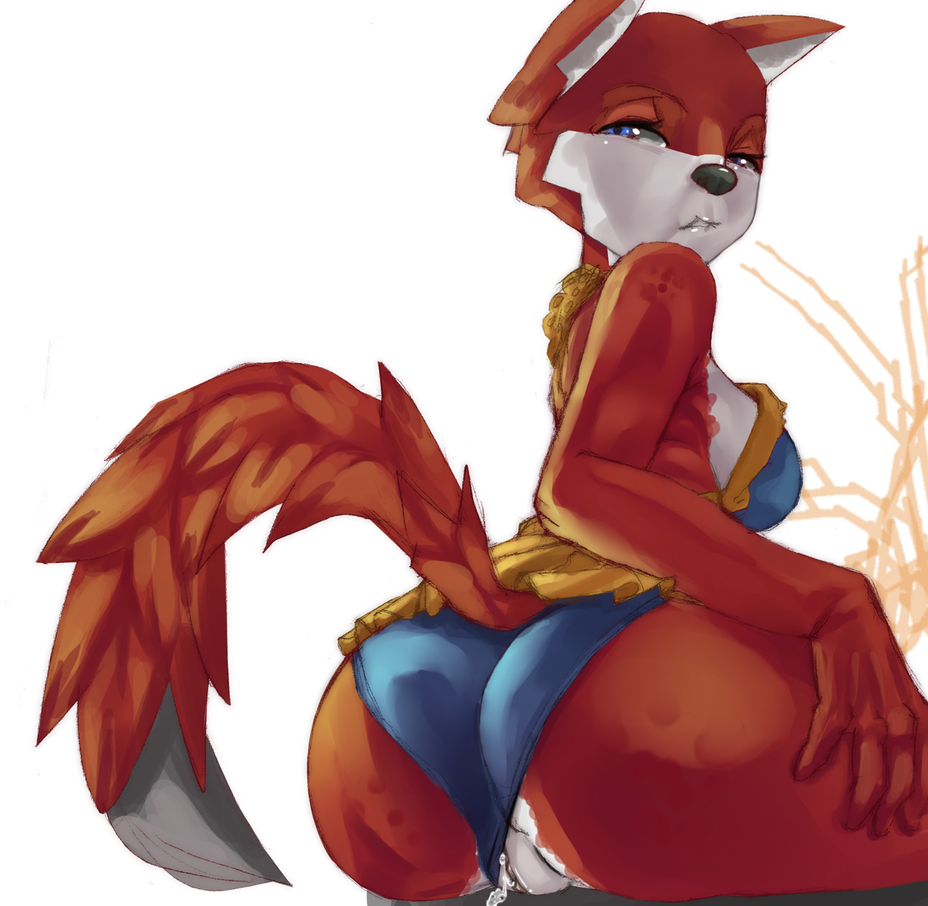 anthroassbreastscanineclothingcumfemaleFlag for Deletionfoxlooking at viewerpantiesplain backgroundpresentingpresenting hindquarterspussy juicered bodyskirtsolounderwear