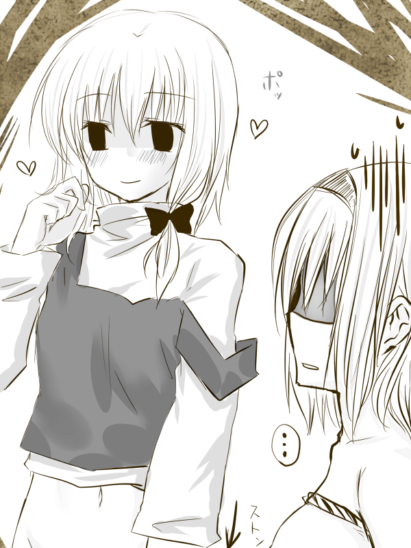 futon (kitsune tsuki), kitsune tsuki, maribel hearn, ghostly field club, touhou, 1girl, blurry, drinking, female focus, greyscale, juice box, monochrome, solo, utubuse