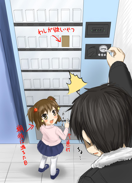 blushchildcoingreen eyeshappymoneypantyhoseskirtsurprisedtwintailsvending machinewhite pantyhose