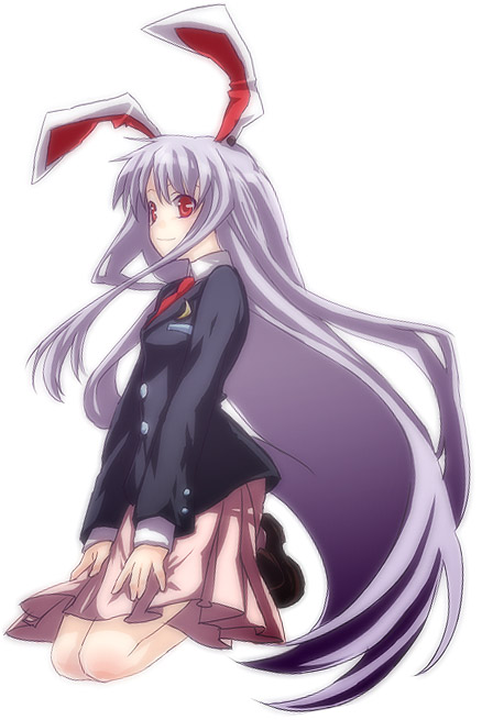 1girlanimal earsblazerfemale focusfull bodyjacketlong hairrabbitrabbit earsred eyesskirtsolovery long hairwhite background