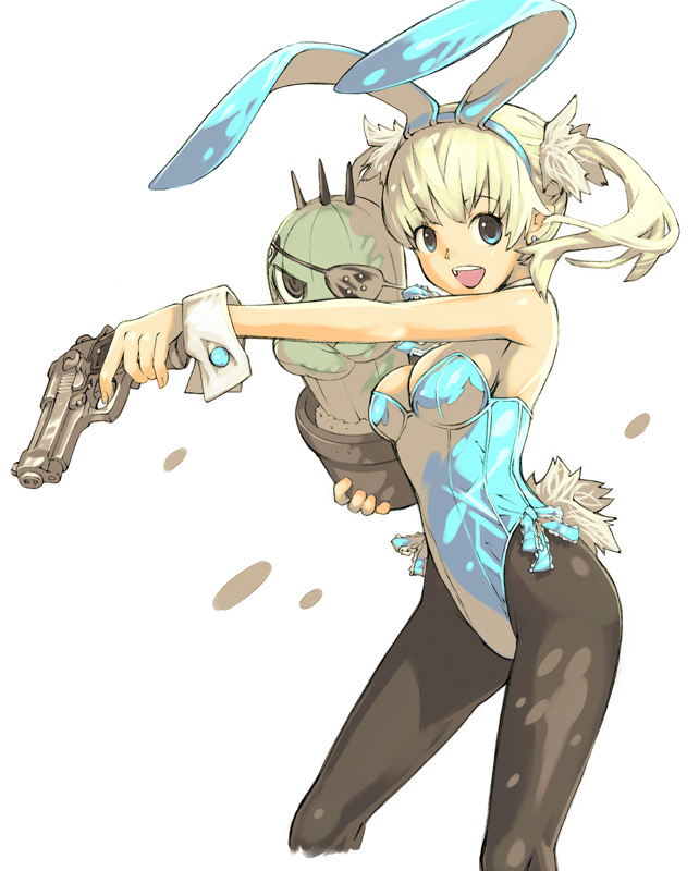 animal earsblonde hairblue eyesfake animal earsflower potgunholdingholding flower potpantyhoseplantplayboy bunnyrabbit earsrabbit tailsolotailweaponwhite background