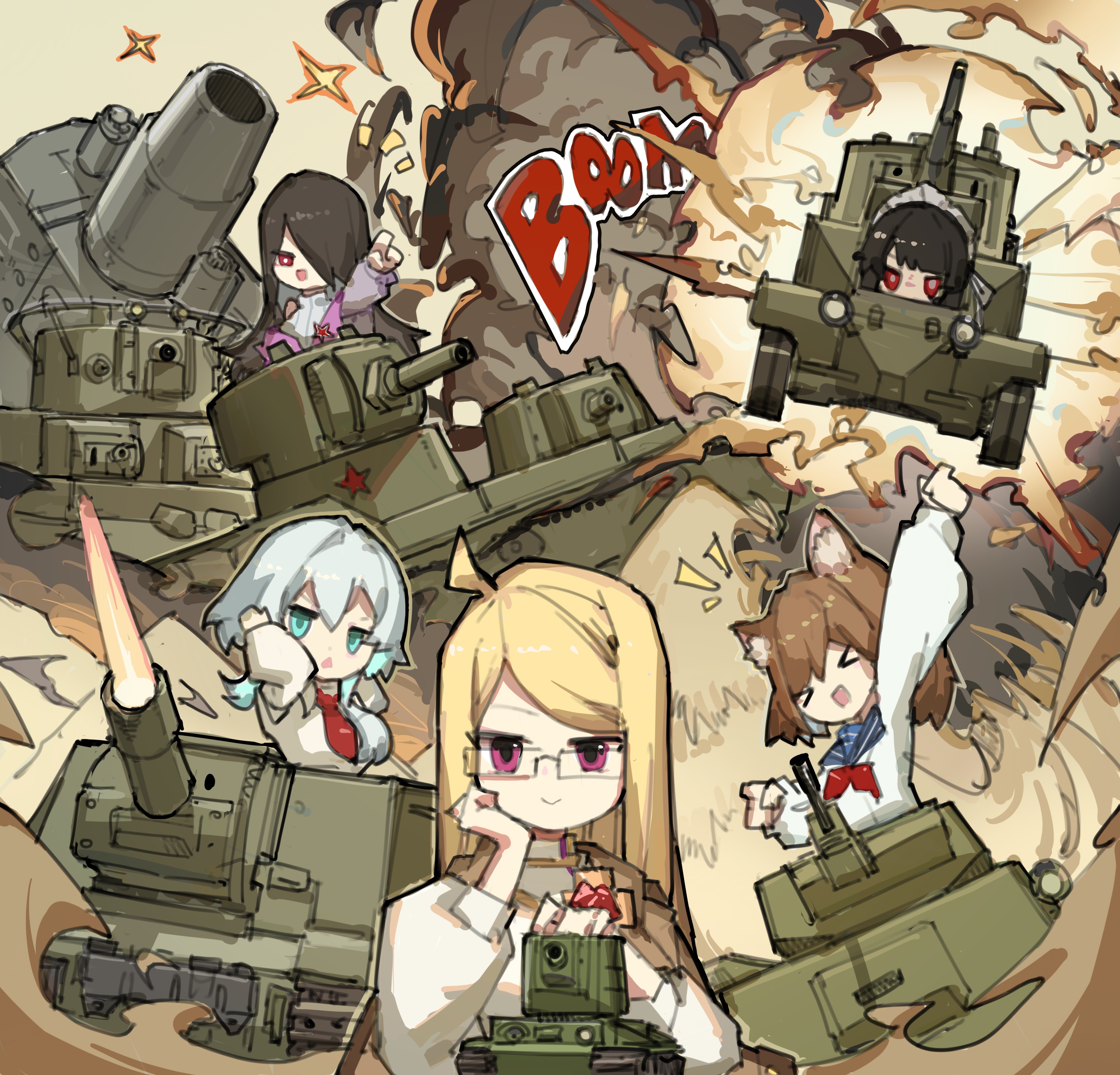 :d1boy5girlsanimal earsarm upblack hairblonde hairblue eyesblue sailor collarbrown coatbrown hairbt-5cat earscat girlcoatcoat on shoulderscommissar (multi turret academy)explosionglassesgrey hairhair over one eyehead restisu-152jacketkarl geratlong hairmaid headdressmaria (multi turret academy)medium hairmilitary vehiclemotor vehiclemulti turret academymultiple girlsneckerchiefnecktienotice linesoff shoulderopen mouthpink eyespurple jacketrectangular eyewearred eyesred neckerchiefred necktiesailor collarshirtsleevelesssleeveless turtlenecksmilesmk (tank)sophia (multi turret academy)sound effectssparklesunday (multi turret academy)sweatertankturtleneckwhite shirtwhite sweaterxdyulia (multi turret academy)zut-37