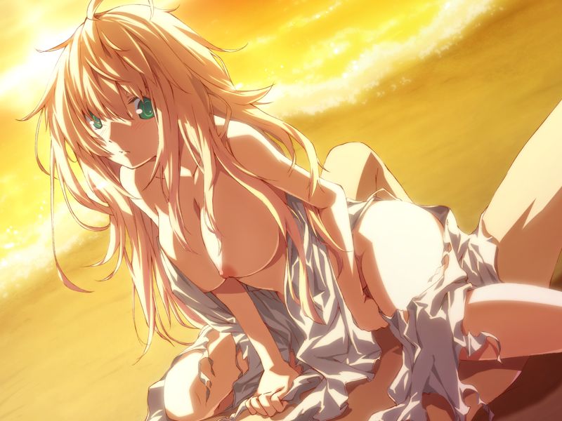 beachblonde hairbreastscowgirl positiondressFlag for Deletiongreen eyesslarge breastslong hairnipplesoutdoorssexstraddlesunsettorn clothesvery long hairwater