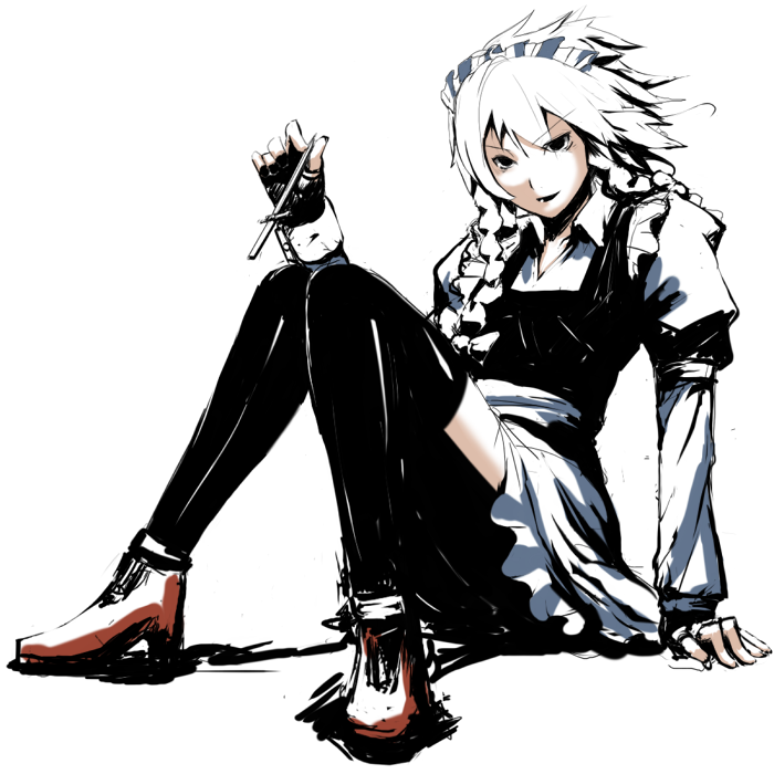 1girlbraidfemale focusfull bodymaidshort hairsittingsolothighhighstwin braidswhite backgroundwhite hair