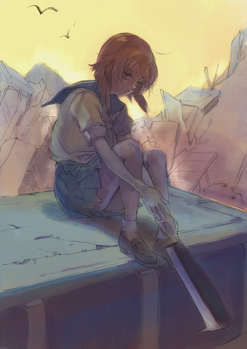 00s1girlanimalbillhookbirdblonde hairfemale focusfull bodyhashitsuki natahatchetnata (tool)outdoorsshort hairsittingskysolotreeyellow sky