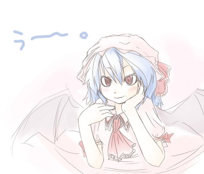 1girlblue hairfemale focusgradient backgroundhatred eyessoloupper bodyvampirewhite backgroundwings
