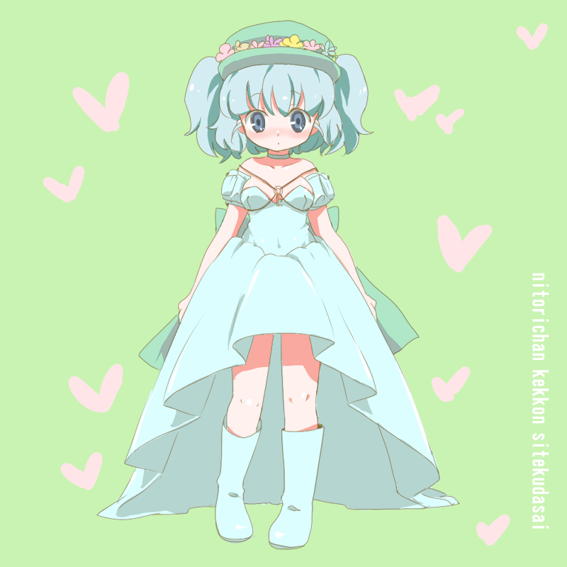 1girlblue eyesblue hairblushdressfemale focusflowerhatheartkeymatching hair/eyesribbonshort hairsolotwo side up