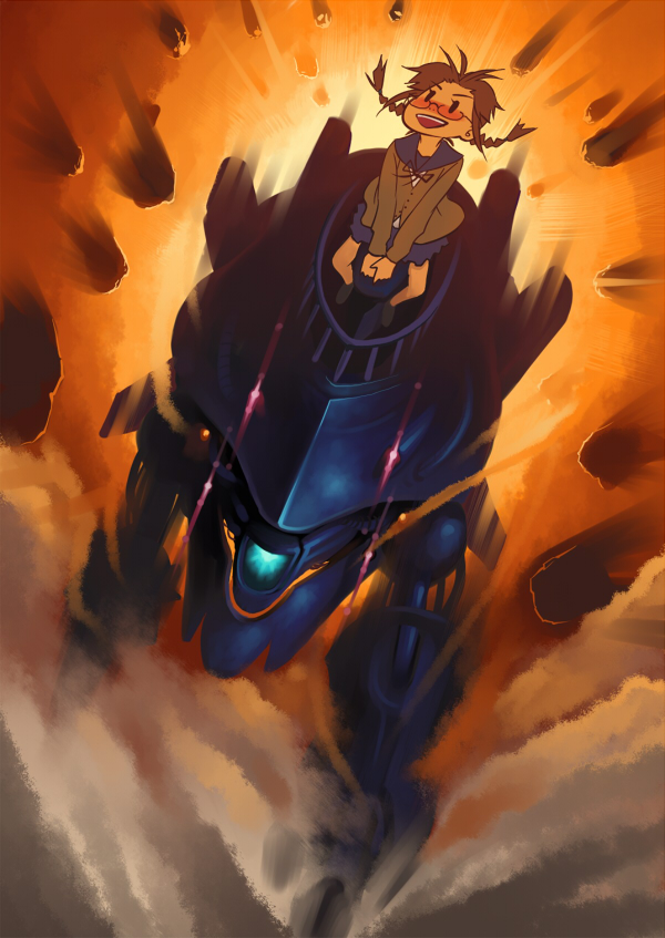 :d00s1girlblack socksblue skirtbraidbrown hairbrown jacketcloudfemale focusfrom abovefull bodyglowinggradient backgroundjacketlong hairlong sleeveslooking upmechano shoesopen mouthred ribbonribbonrobotsittingskirtsmilesockssolid oval eyessolotwin braidsv-shaped eyebrows