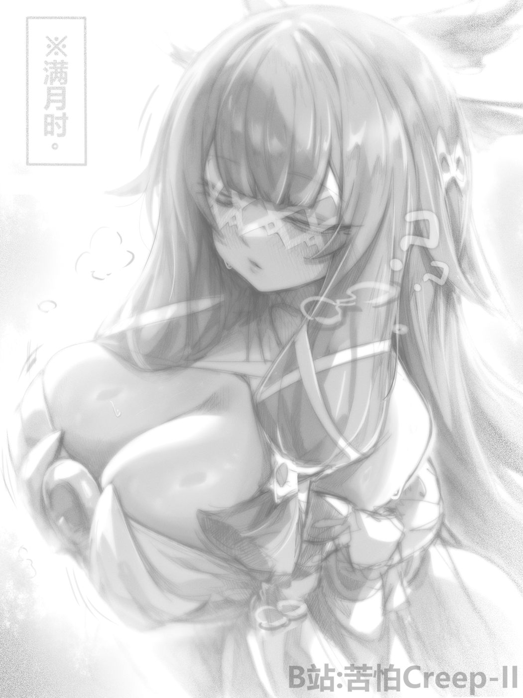 1boy1girlalternate breast size (larger)breastscleavageclosed eyesclosed moutheye maskgreyscalehuge breastslarge breastslong hairmonochromesolo
